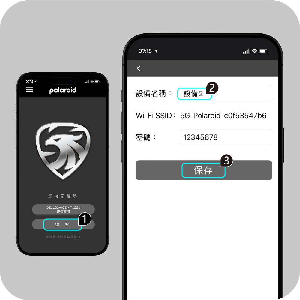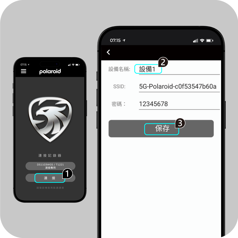 Step 4: 設定專屬設備名稱。例如:使用者名稱+前鏡頭(方便於APP中辨識對應記錄器) 點選 “保存”