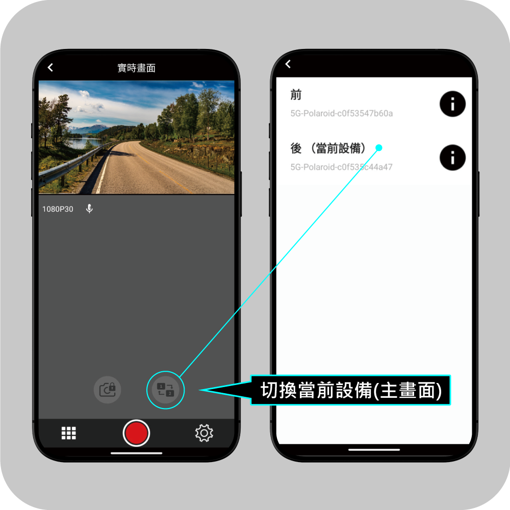 連接《設備2》以後,如欲切換畫面(當前設備),可點選右下按鍵進到選單切換