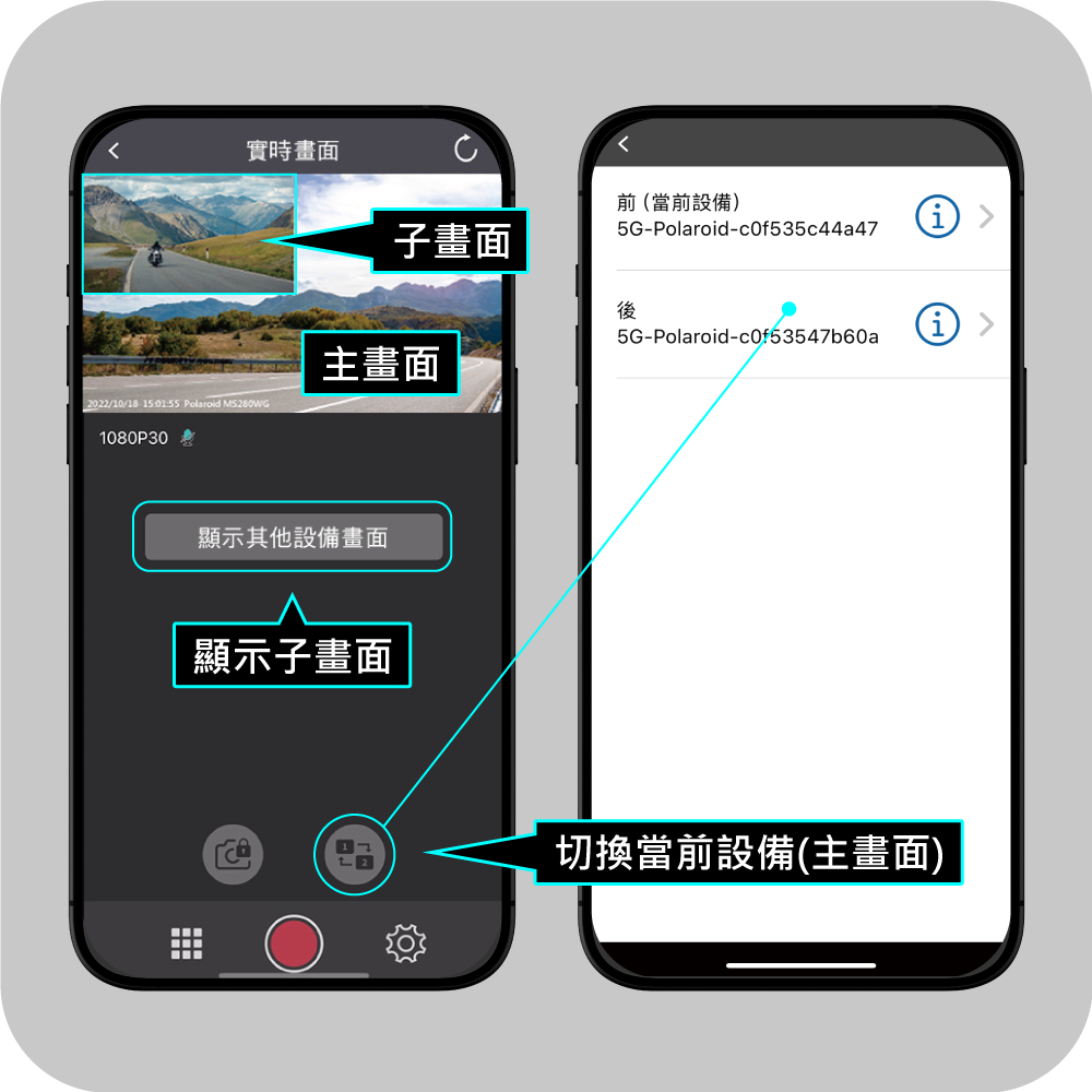 · 支援雙機串接前後雙錄 (App雙顯,iPhone)