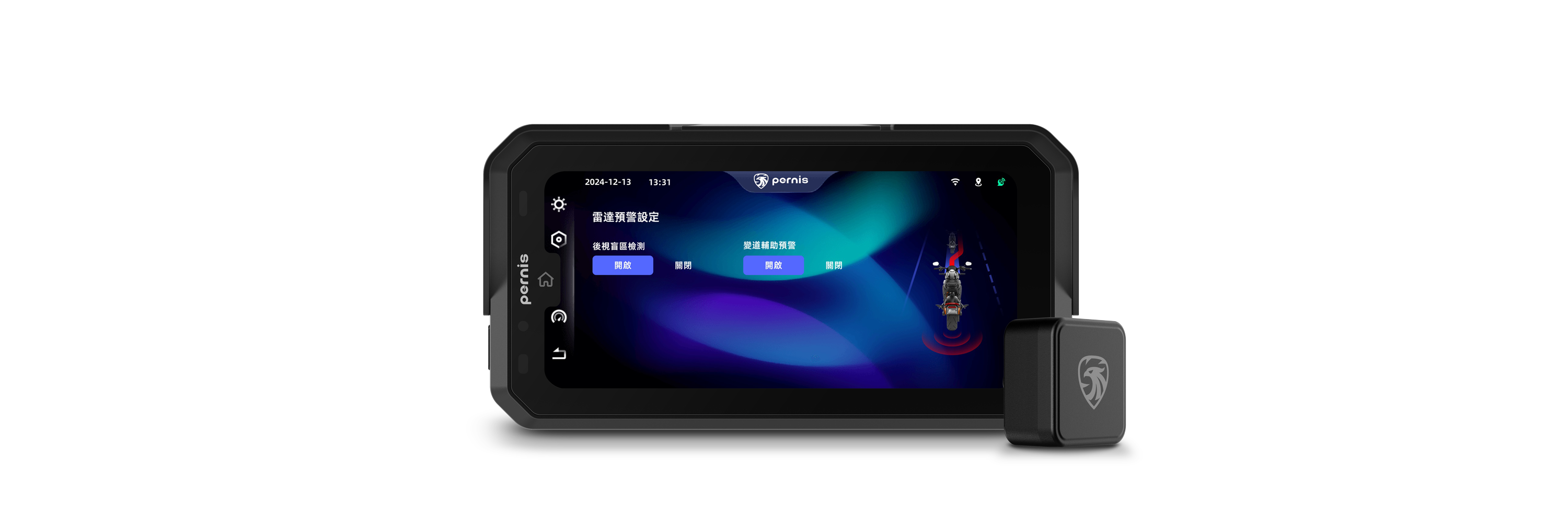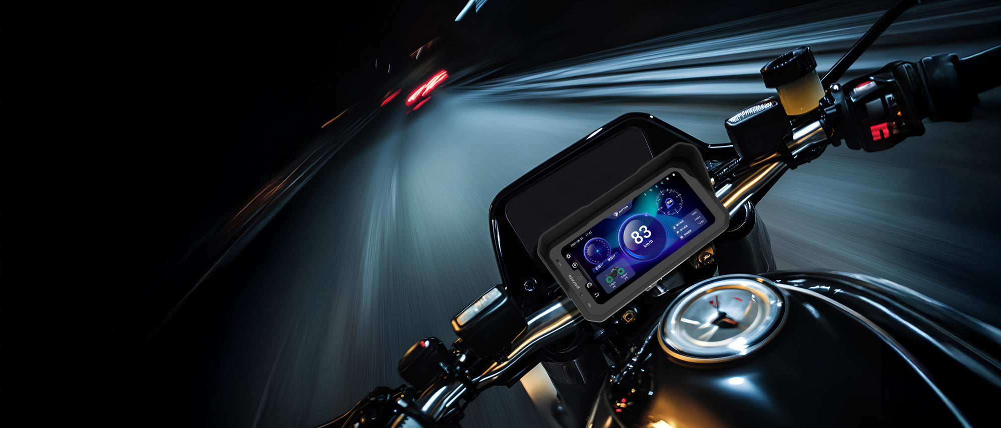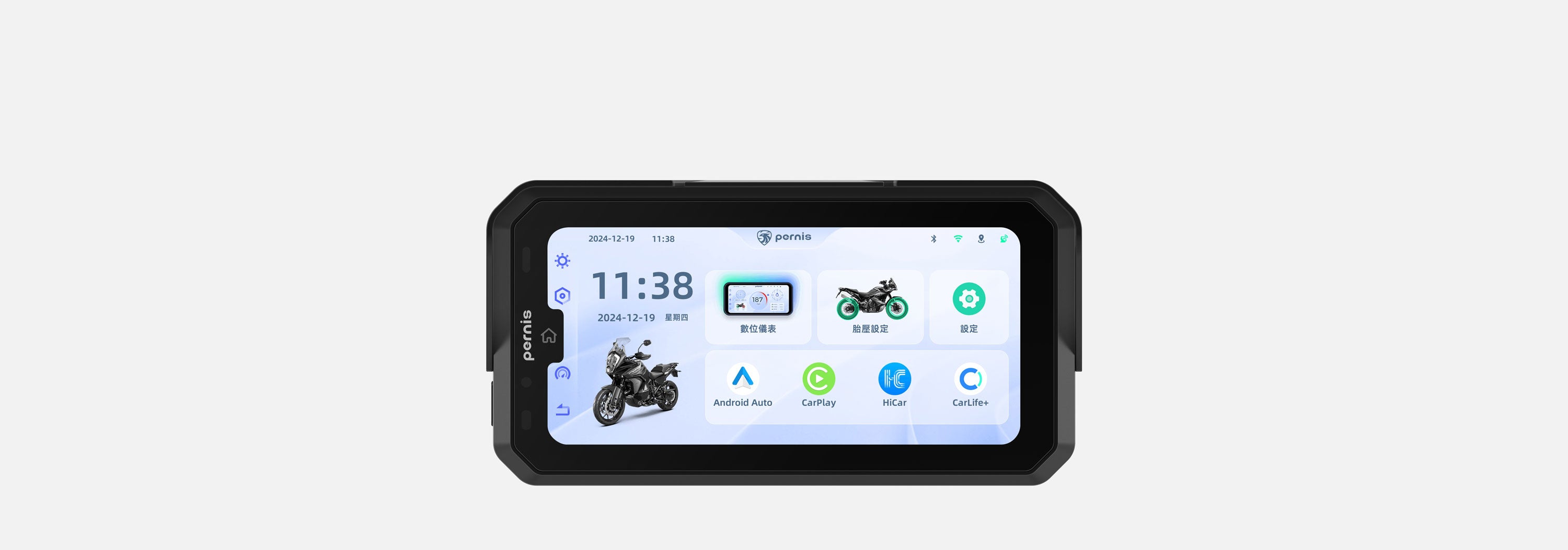 本產品整合摩托車騎士所需的騎乘導航路線資訊、數位多功能儀表、GPS測速提醒及藍牙音樂播放、可選配胎壓檢測提示及