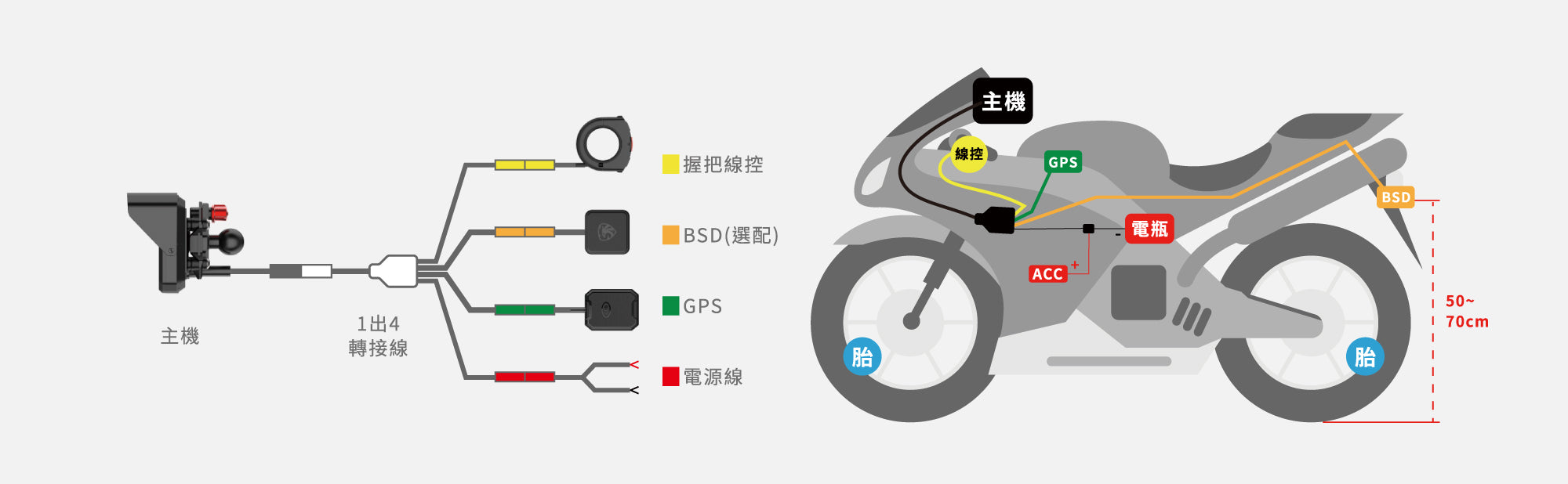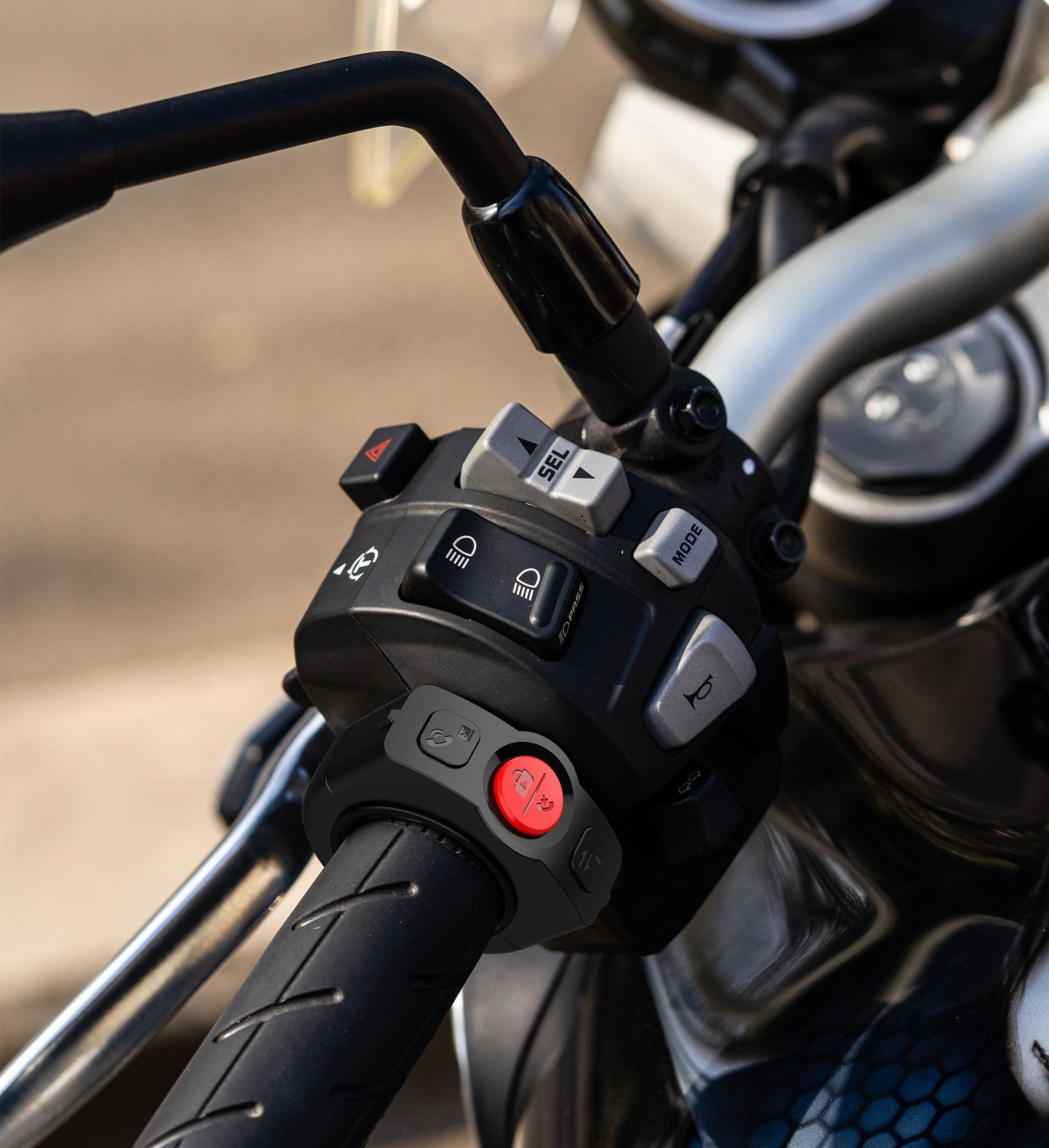 專用握把線控,為主機功能的快捷鍵,方便騎乘者快速接通電話與畫面切換。安裝於左側把手(非油門握把),並將按鍵角度傾斜於騎行過程中左手拇指易觸摸按壓位置,讓您在騎行中輕鬆掌控智慧化體驗,提升安全與便利性。