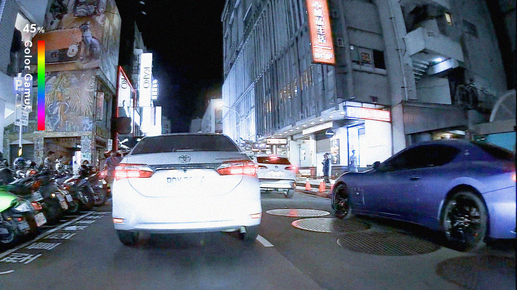 採用高感光 Sony STARVIS Sensor,搭配 F2.0 光圈與 180° 超廣角視野,能同時捕捉騎士左右兩側畫面。在車流密集、變換車道或路口交會的瞬間,左右來車動態一覽無遺,不再留下視野死角。