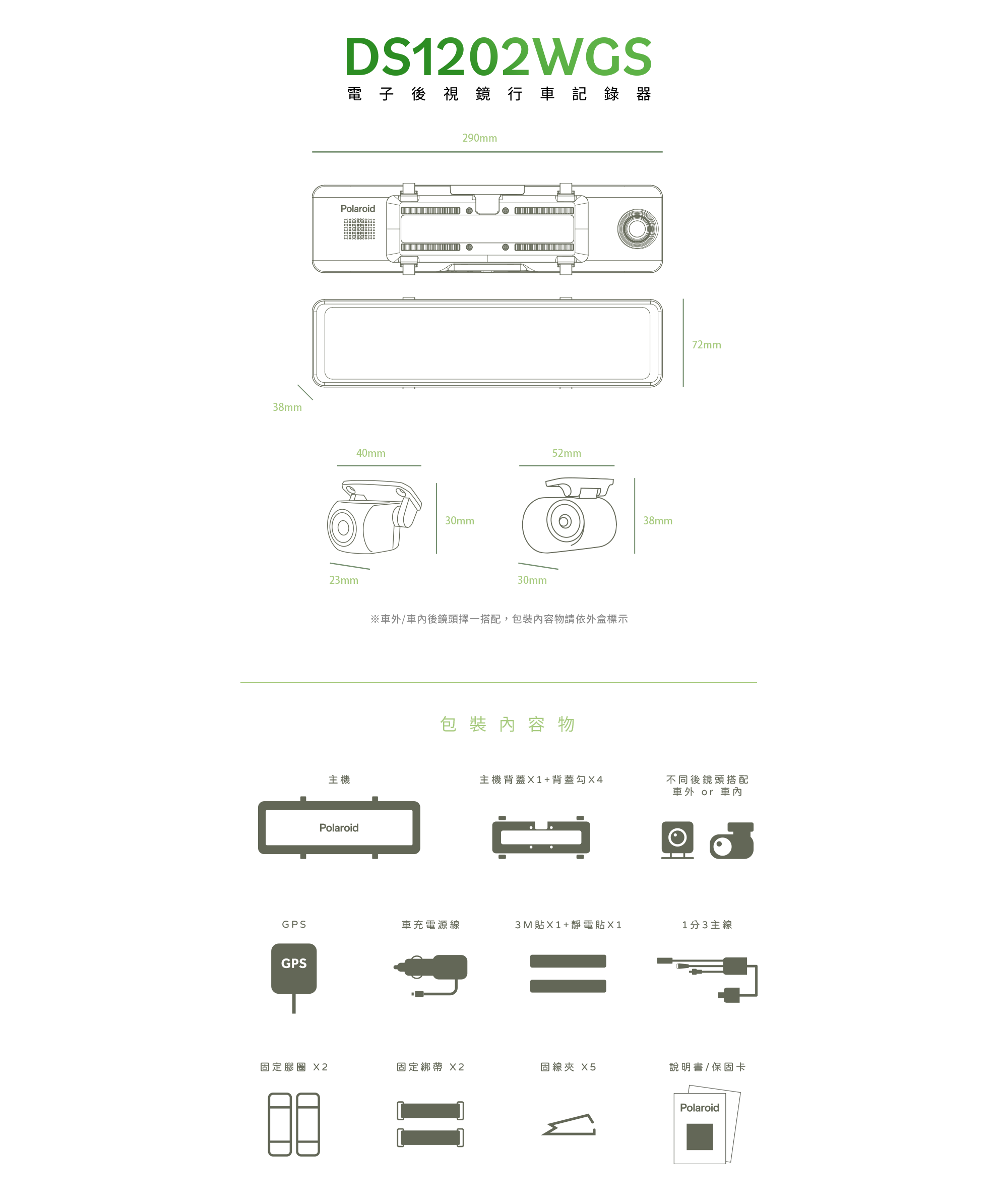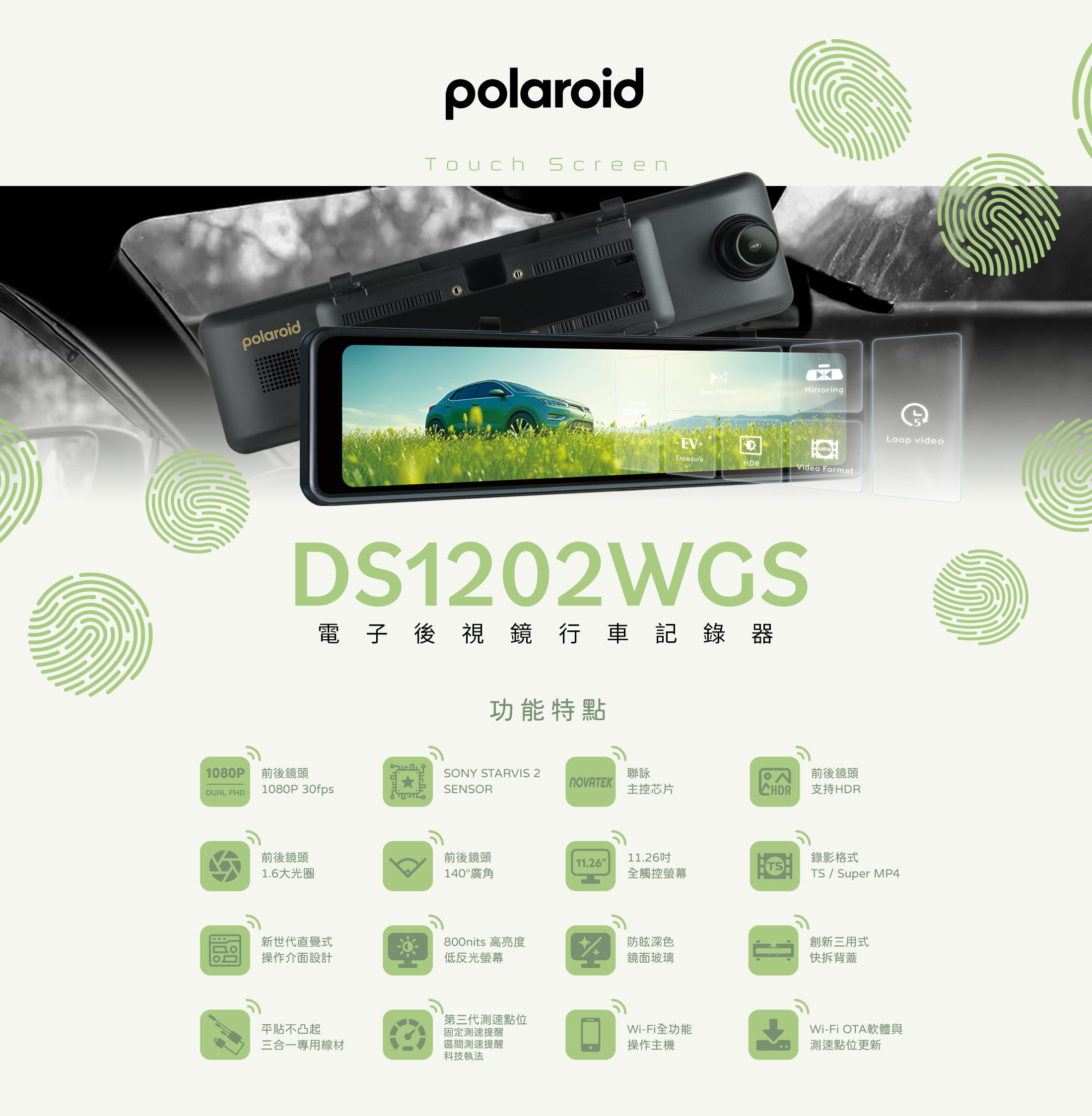 Polaroid DS1202WGS 電子後視鏡
