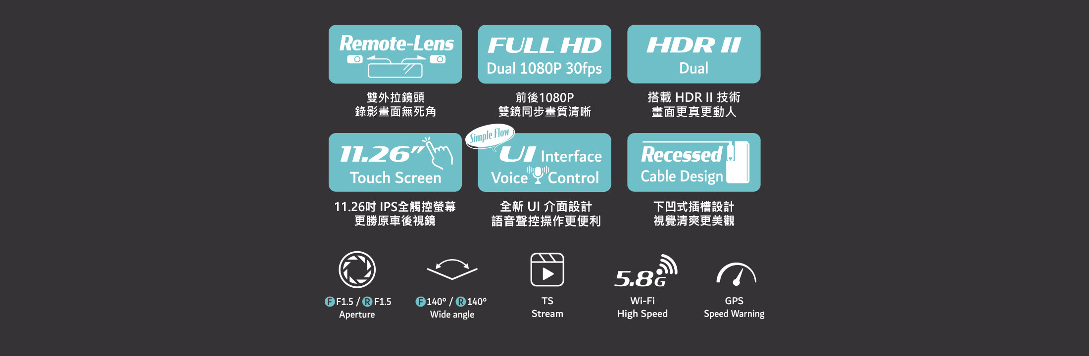 前鏡頭1080P HDR II @30fps/後鏡頭1080P HDR II @30fps