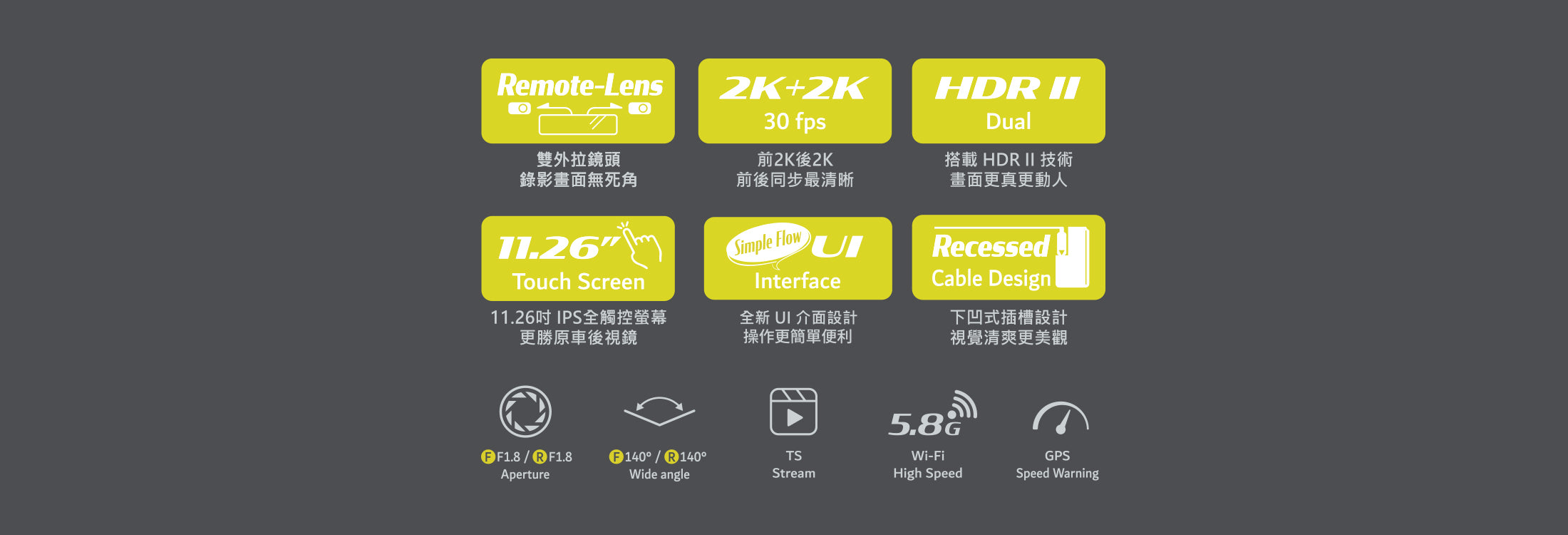 前鏡頭2K HDR II @30fps/後鏡頭2K HDR II @30fps