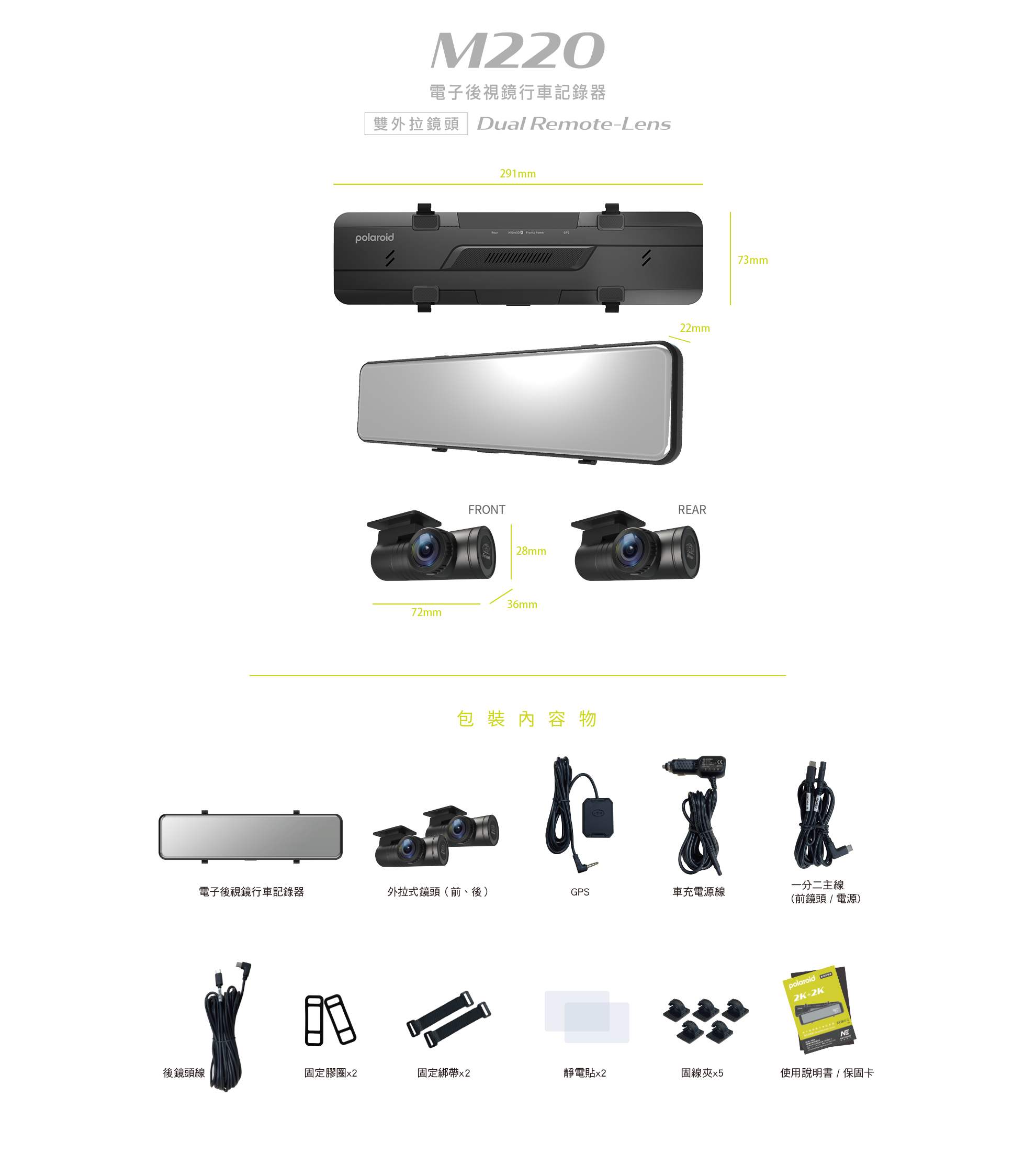 Polaroid M220 雙外拉電子後視鏡 汽車行車記錄器