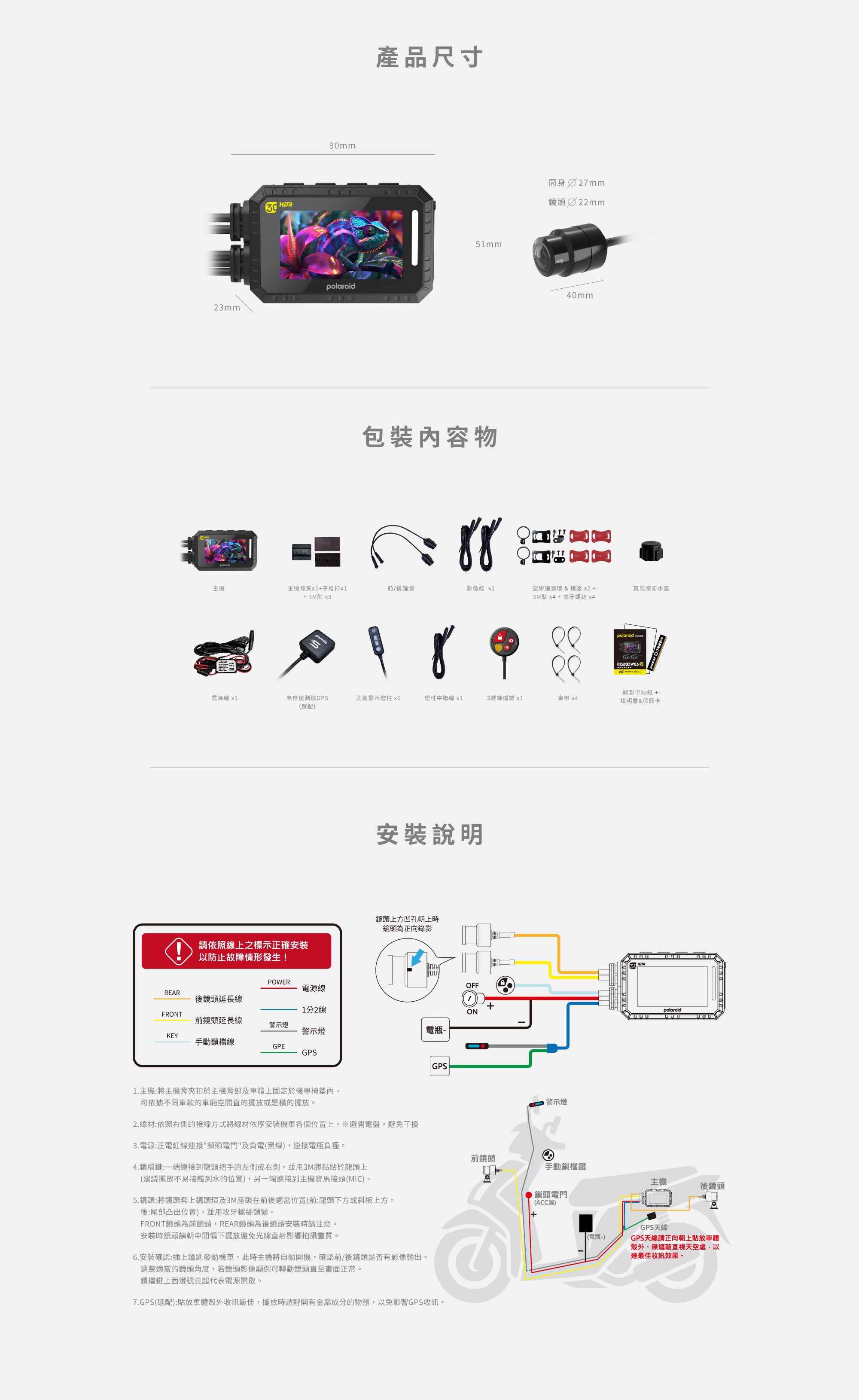 · 業界首創測速警示燈柱:錄影燈 ∕ 蜂鳴器 ∕ 測速燈(需搭配GPS天線)
