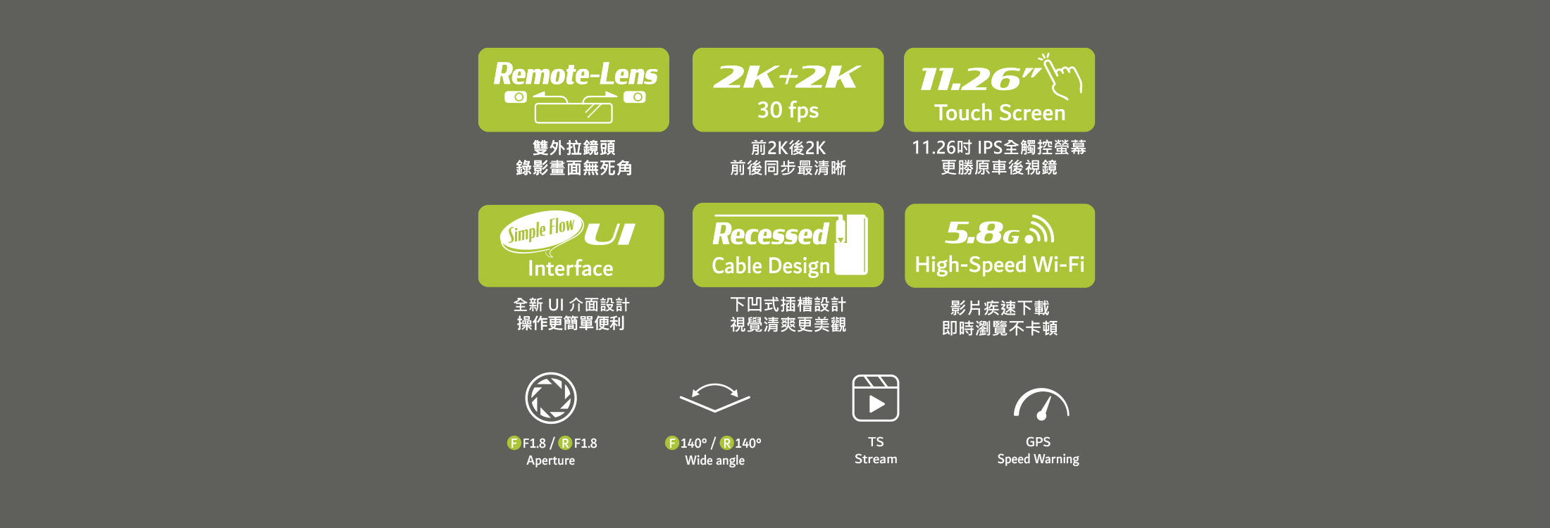 · 140 度廣角/F1.8光圈
