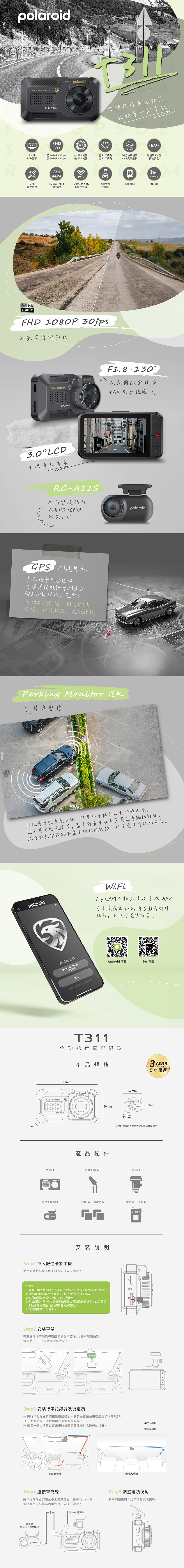 主機92x50x35mm / 104g / ABS 後鏡頭52x38x30mm / 28g / ABS